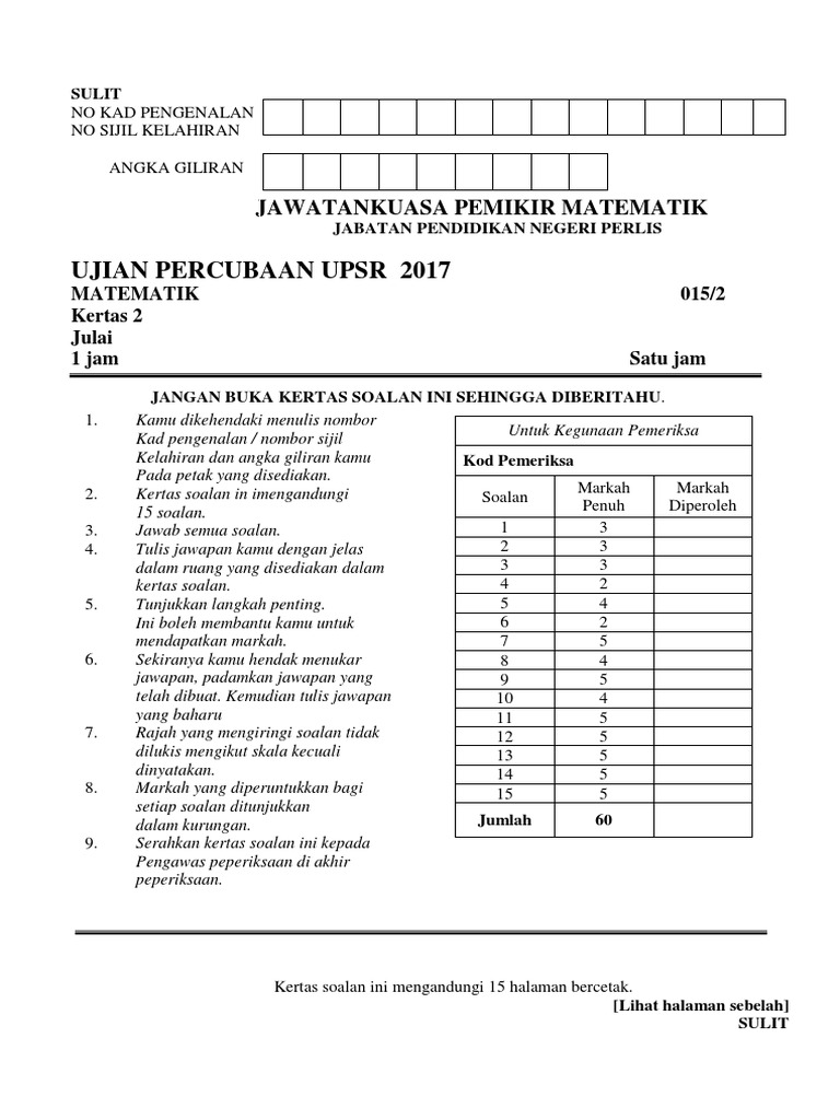 Related : Soalan Upsr 2017 Matematik Kertas 2 / Kamu dibenarkan menjawab keseluruhan atau 9 2 sebahagian soalan sama ada dalam bahasa lnggeris..